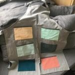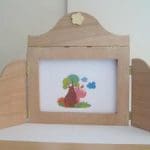 Un tablier avec plusieurs poches dans lesquelles on peut cacher des livres, des figurines, des objets, des marionnettes, des plumes, … au fil de l’histoire on sort les petits trésors des poches en créant la surprise auprès du jeune public