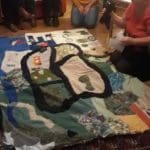 C’est un décor en tissu qui permet de mettre en scène une histoire. Il peut être mis au sol, suspendu, posé sur un support, … Les enfants peuvent se placer autour mais aussi dessus et participer en manipulant les petits objets et/ou personnages.